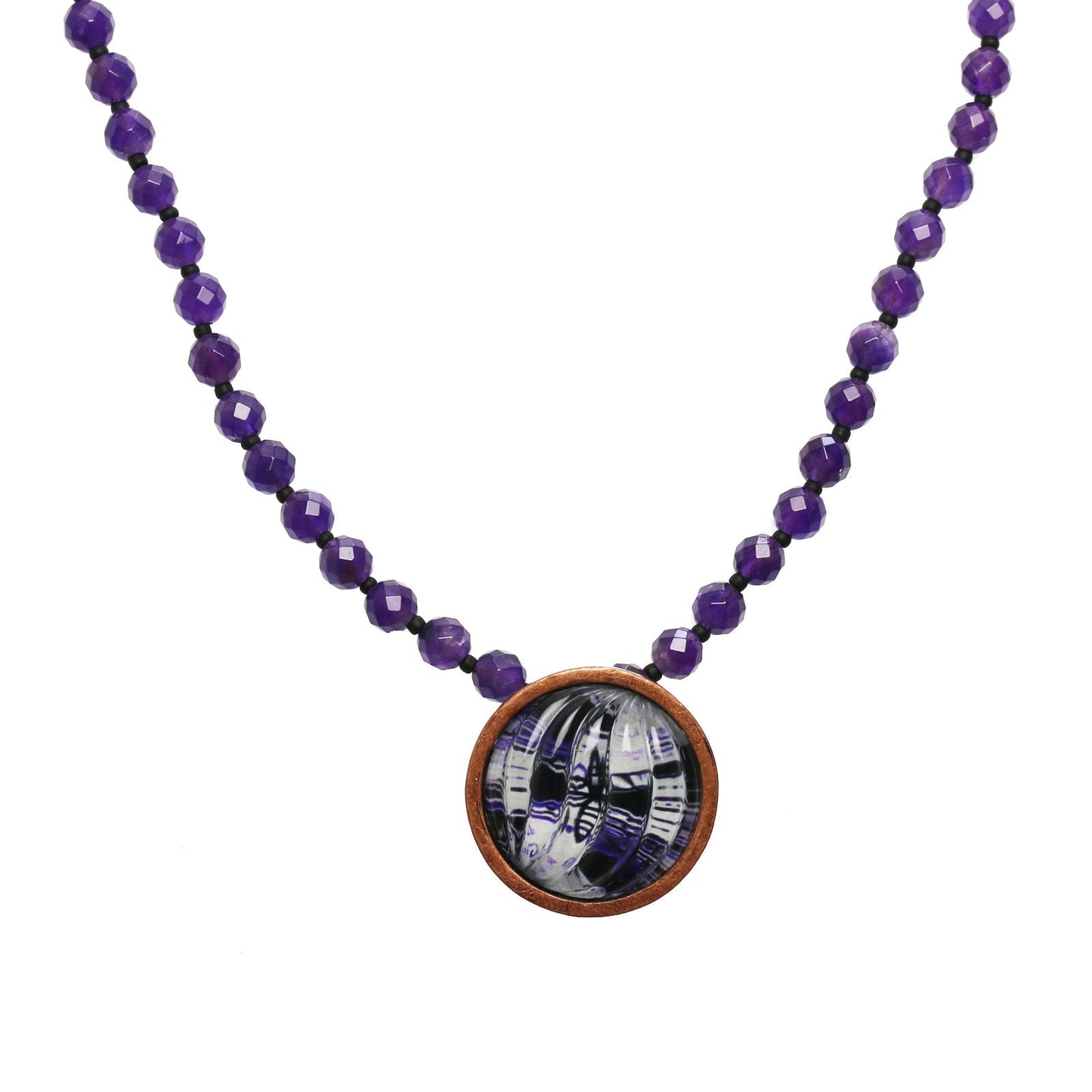 "Lily Series" (Purple) is a long necklace using resin parts. Amethyst was combined to match the color of the resin. The adjuster has stichtite. Recommended for simple attire accent.