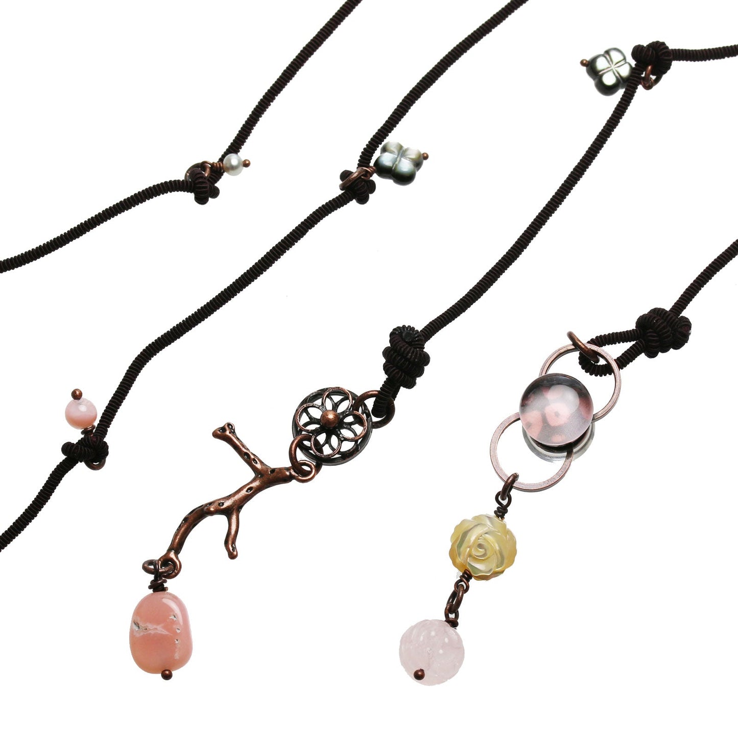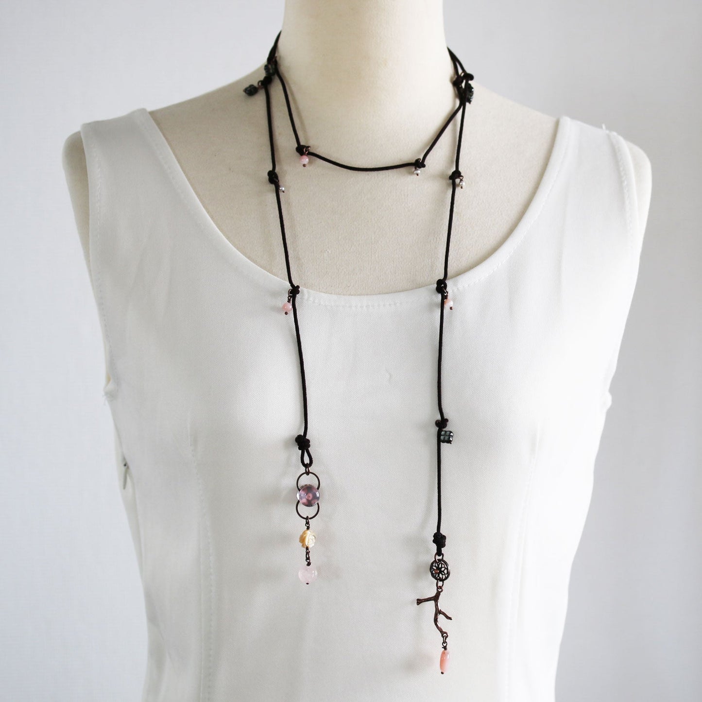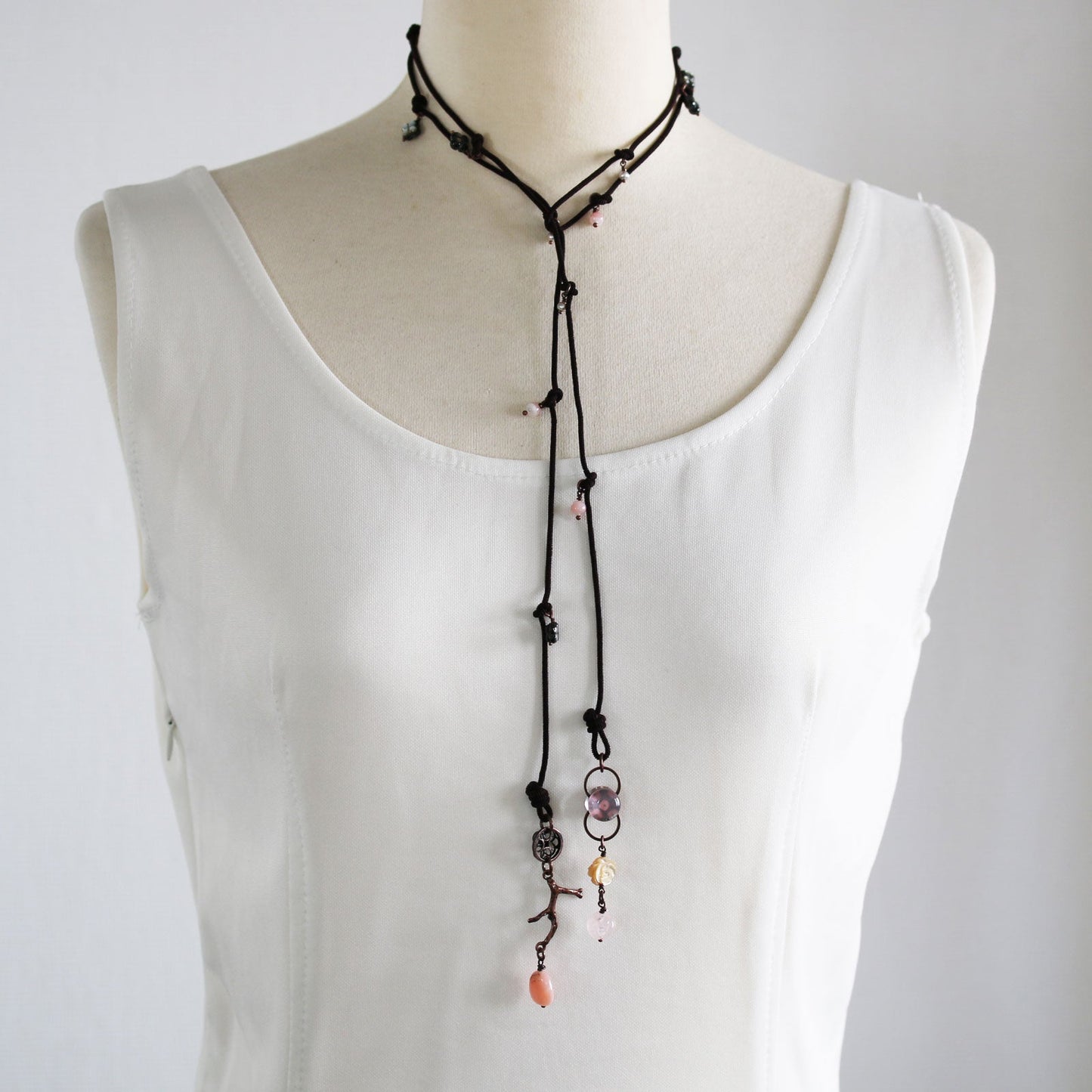 It is a lariat using resin parts of "Fawn Series" (Pink). Shell, rose quartz, pink common opal and freshwater pearl were combined with a greasy color code to match the color of the resin. You can enjoy wrapping in color with no clasp attached. Recommended for simple attire accent.