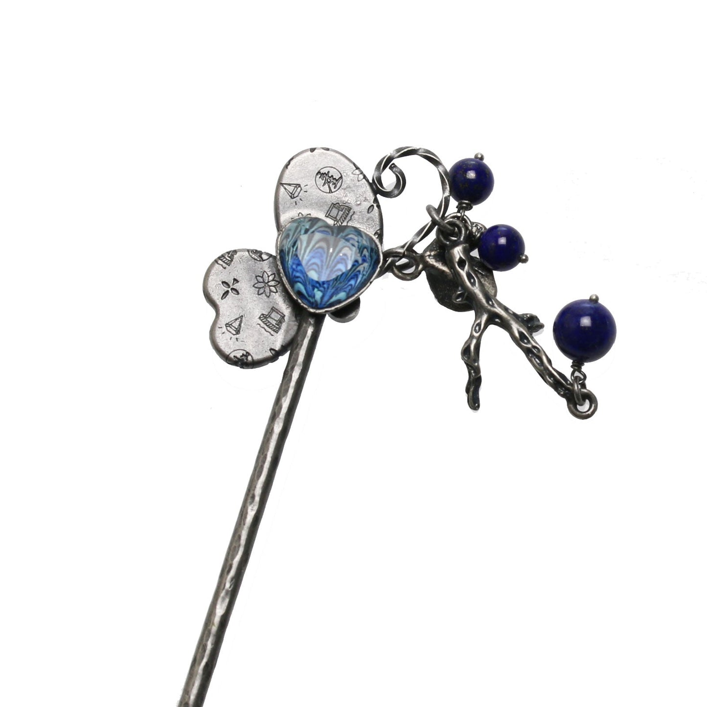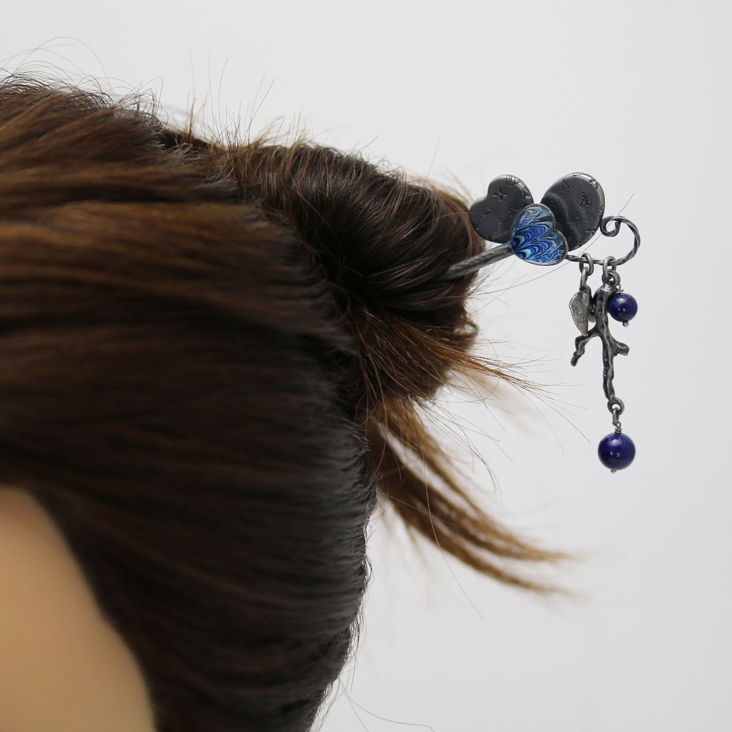 It is a hairpin using plastic parts of "Marble Series" (Blue). The blue color of Lapis lazulis are shining on your hair. It is a recommended hairpin that decorates hairstyle gorgeously.