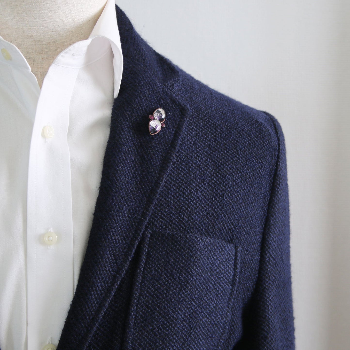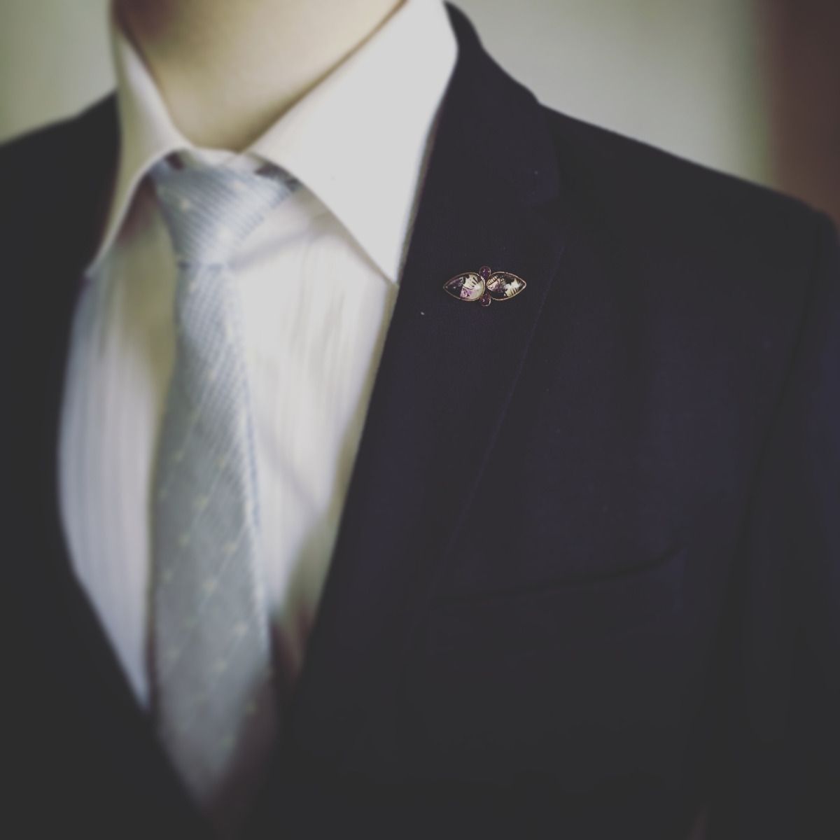 It is a pin broach using resin parts of "Lily Series" (Purple). It is easy to coordinate with chic hues. Recommended for casual accent of the chest. It can be removed by pulling the entire fastener while pressing the two jagged knobs on the fastener. When inserting it, push it in until it clicks.