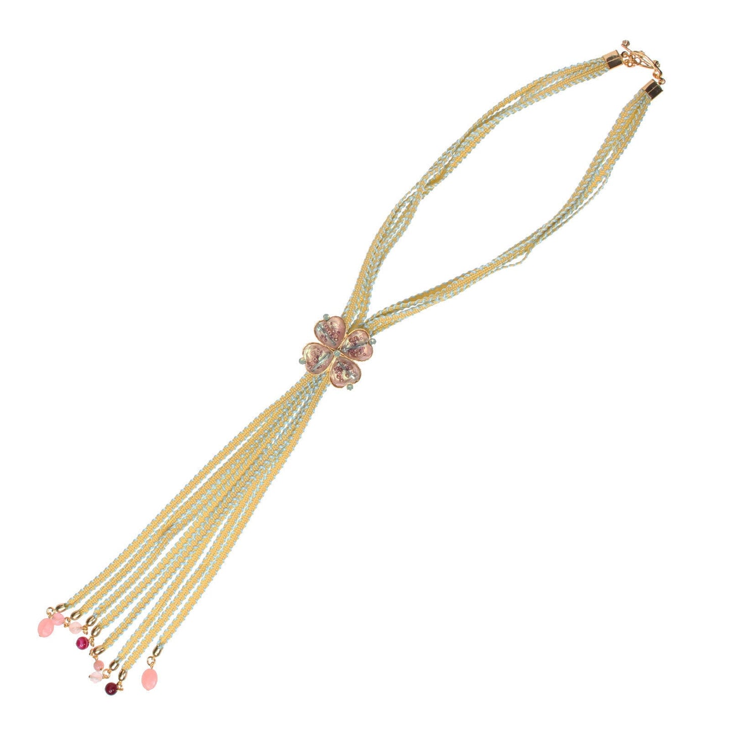Ribbon Bolo Tie Necklace Flower 24k Gold