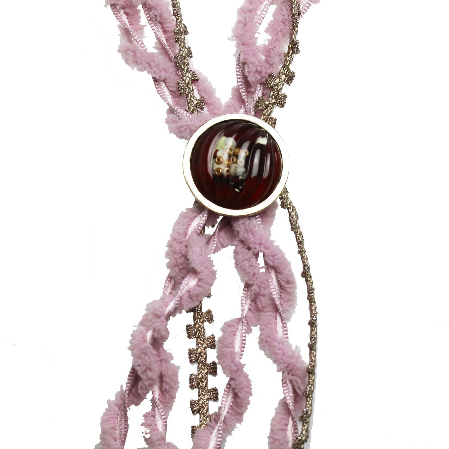 It is a ribbon bolo tie using the "New Candy Series" (Red) drilling ball shaped resin parts. It is a gorgeous design that spreads as if you can wear a ribbon containing lacquered ribbon and pink ribbon that matches the color of the resin. Recommended for simple attire accent.