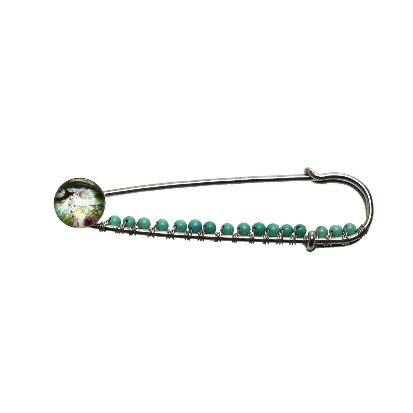 It is a brooch using resin parts of "Amazon Series" (Blue). We combined the turquoise according to the color of the resin. Pull the eyes with unique shades. Please keep a shawl and a muffler, as a cardigan closure. Resin parts and metal parts are handmade.