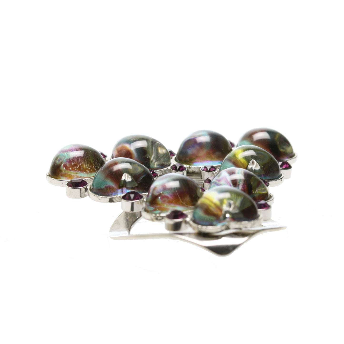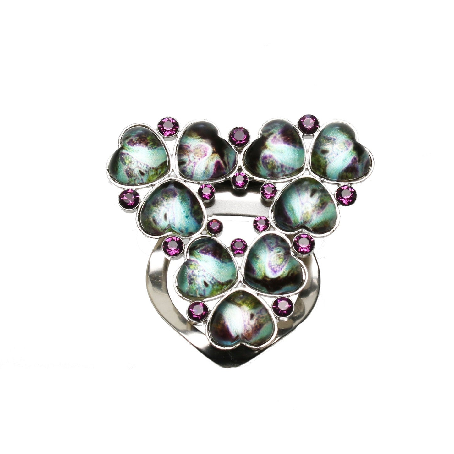 It is a scarf clasp clip from the "Amazon Series (Blue)" made of resin. We put some rhinestone with the purple heart parts. The metal parts are the nickel-free, it is recommended for those allergic to metal. Because the ring portion is about vertical and horizontal 2.5cm, it corresponds to the width 2.5cm below from the scarf when bundled.