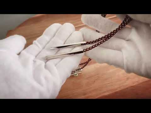 It is a silk bolo tie using the resin parts from the "Vine Series"(White). The hand-painted vine pattern matches perfectly with the silk braided cord. The resin parts are based on white pearls, giving off a refreshing atmosphere and making it a design suitable for people of all ages and genders. It is the perfect jewelry for a gift.