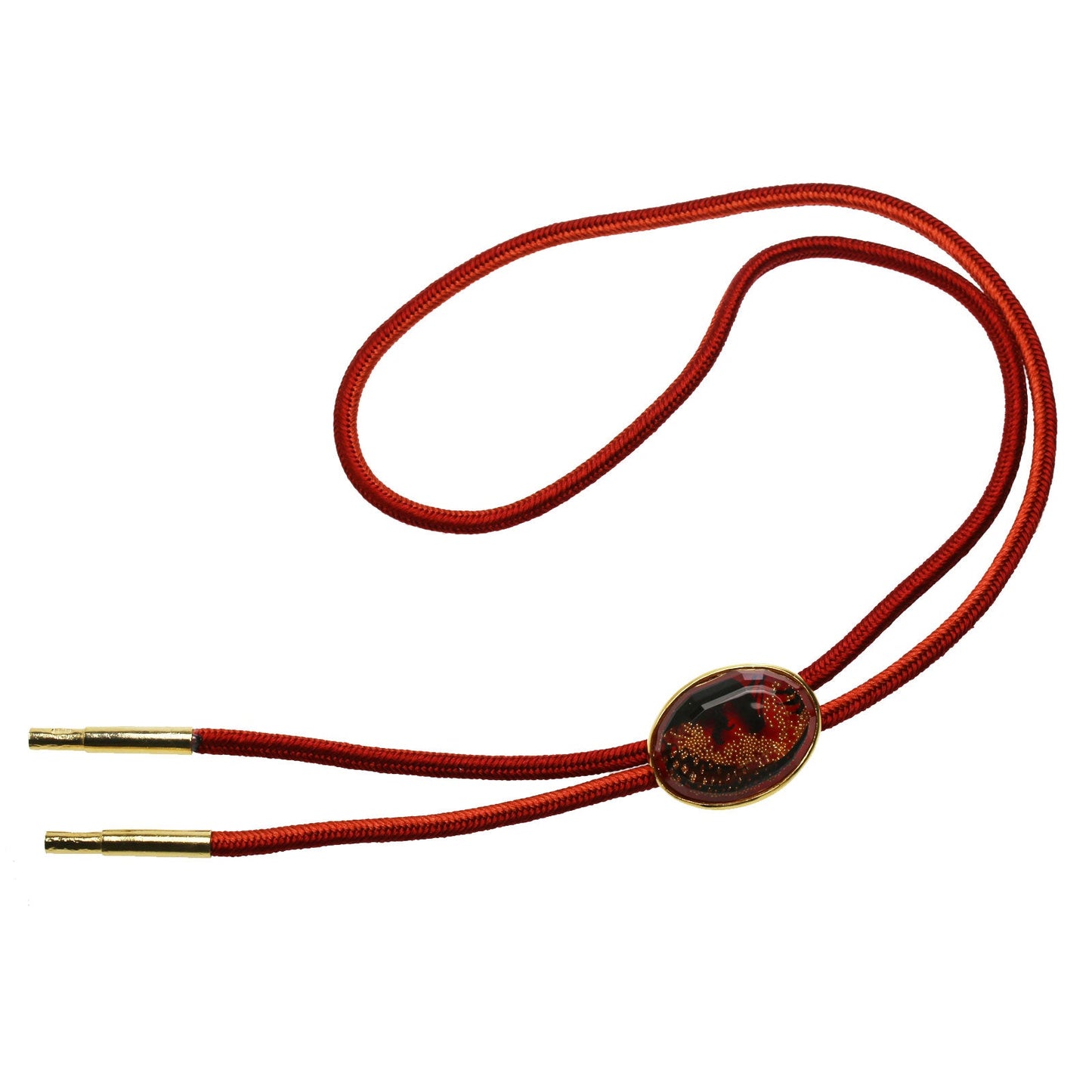 It is a silk braid bolo tie using the resin parts of the dragon pattern. The Braid was custom-made in Kyoto craftsmen. The silk unique luster is beautiful red and vermilion and pull the eye.