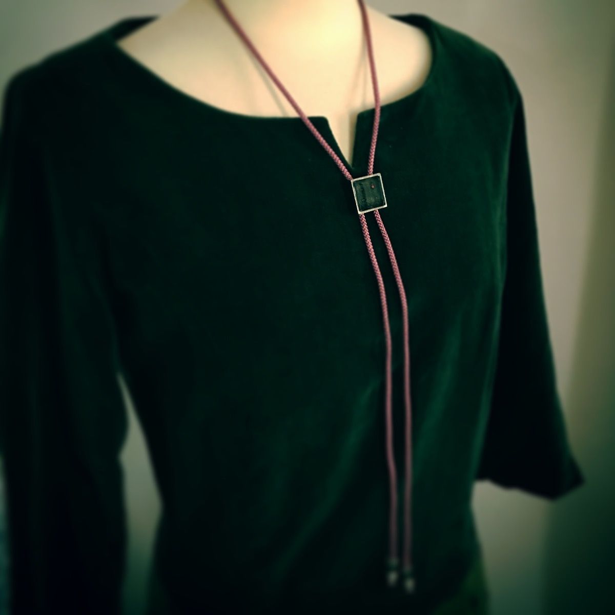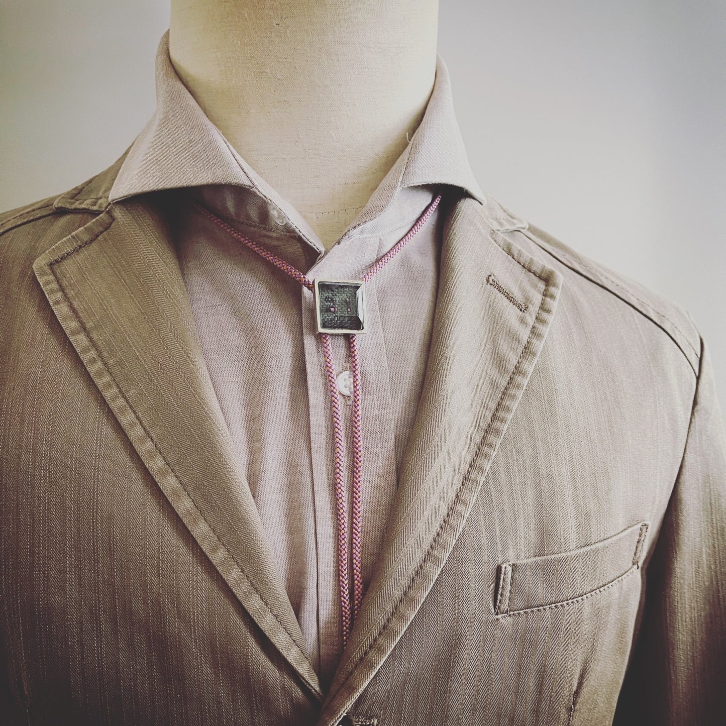 It is a silk braid bolo tie using resin parts and braid of "Dandy Series". It is a pink braid, but black resin parts are easy to coordinate by pulling the whole. Pleasing to casual attire accents.