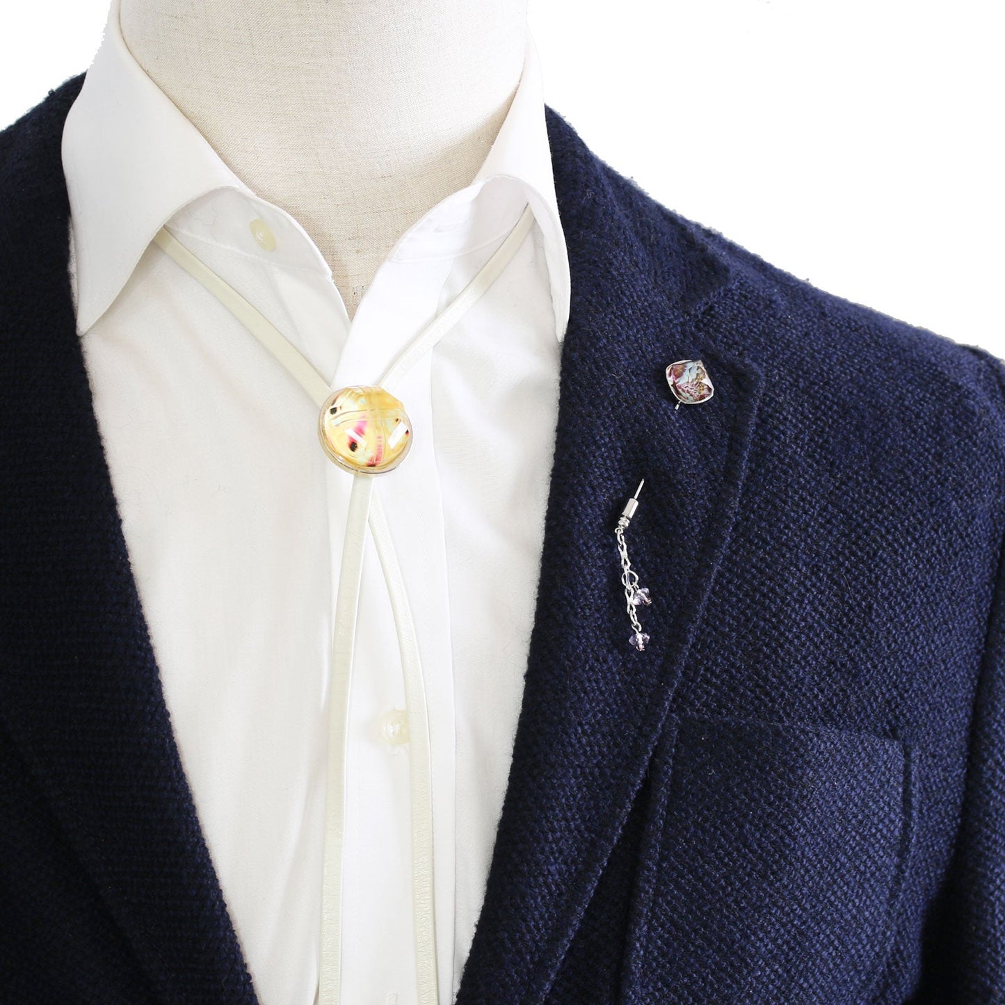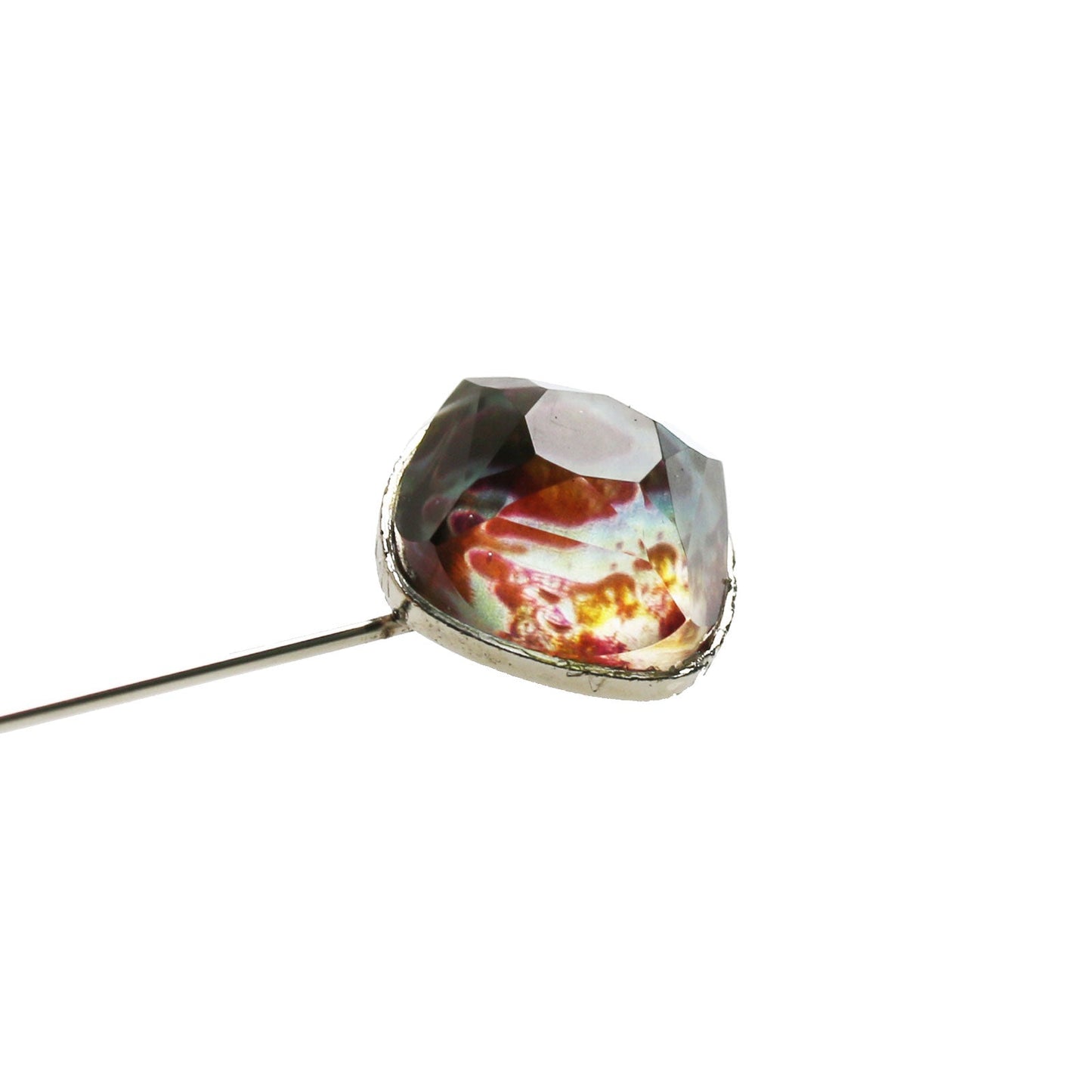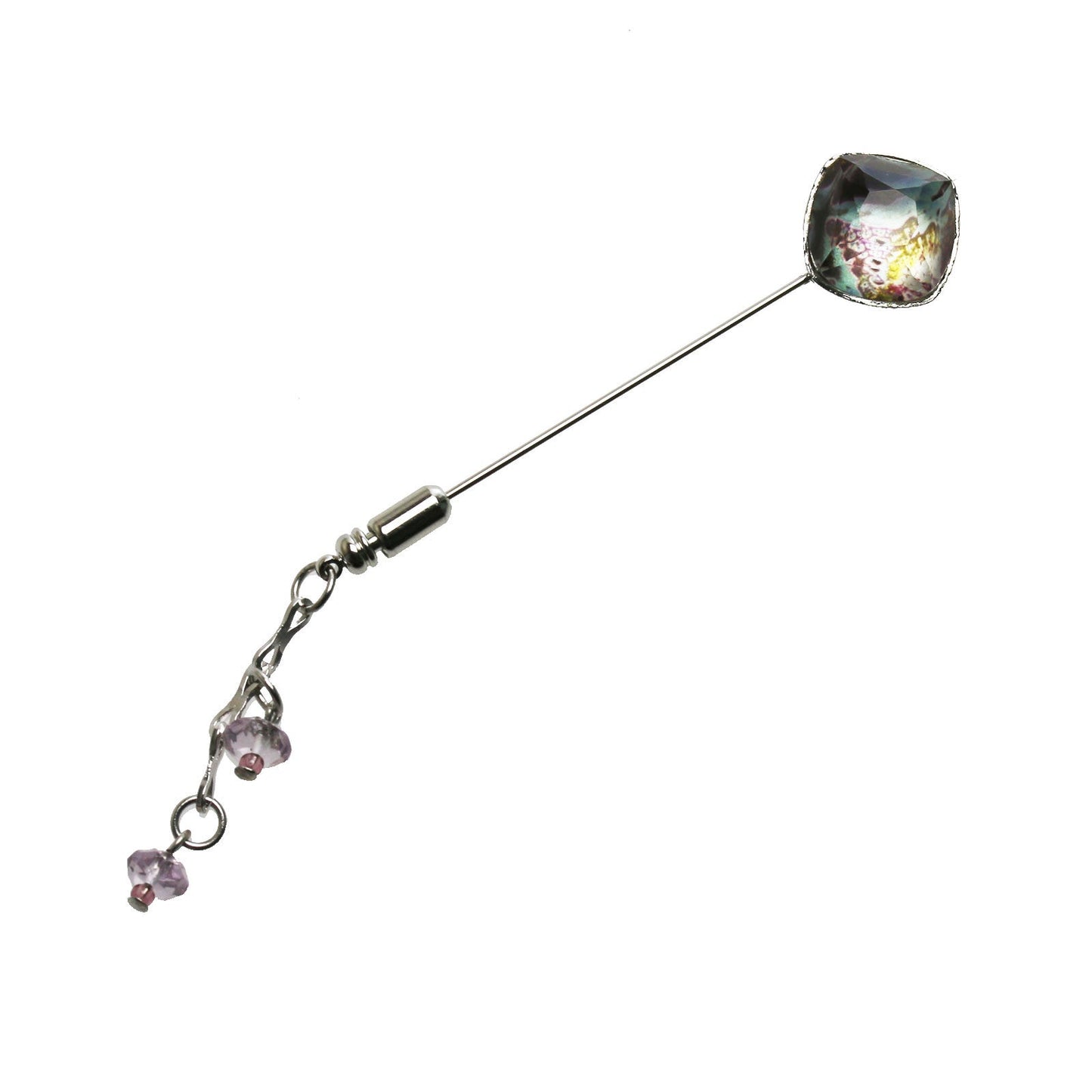 It is a simple hatpin with square resin parts of "Amazon Series" (Blue). It attracts a unique color Ide eyes. We hung amethyst in the fastening part. It is recommended to put on the collar of the jacket or attach it to the hat. Resin parts and metal parts are handmade.