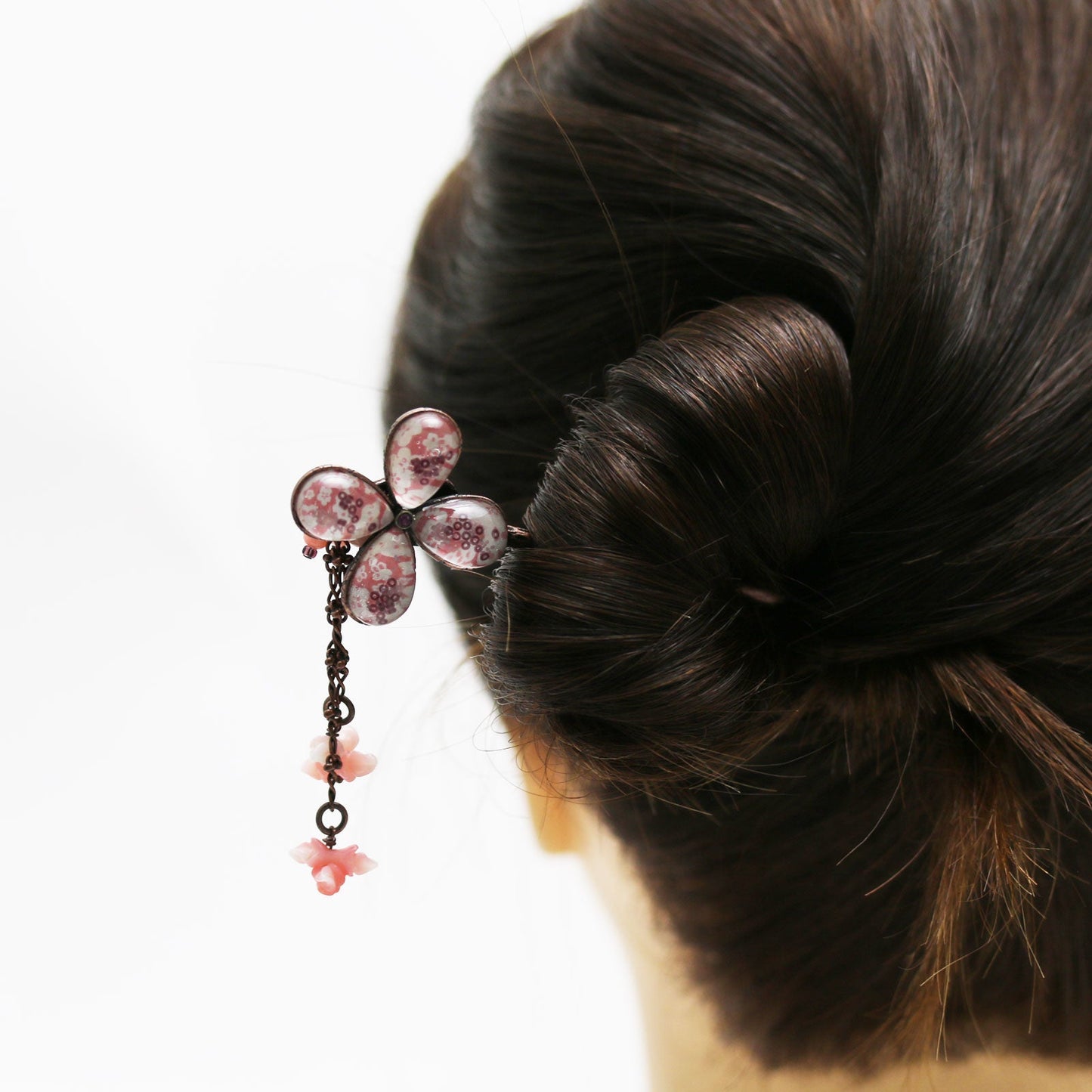 This hairpin using the resin parts of "Plum Cake Series" (Pink). It is a cute design that swells like a flower bud that matches the color of the resin. It is recommended for hair accents. It is also popular for gifts.