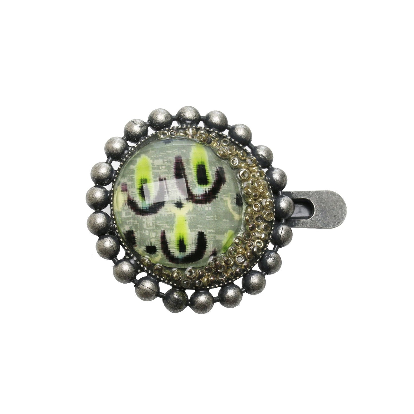 It is a scarf clasp using round resin parts of "Dororon Series" (Gray). You can use it to fasten a scarf or shawl. Recommended brooch that can be stopped without opening the hole. Resin parts and metal parts are handmade.