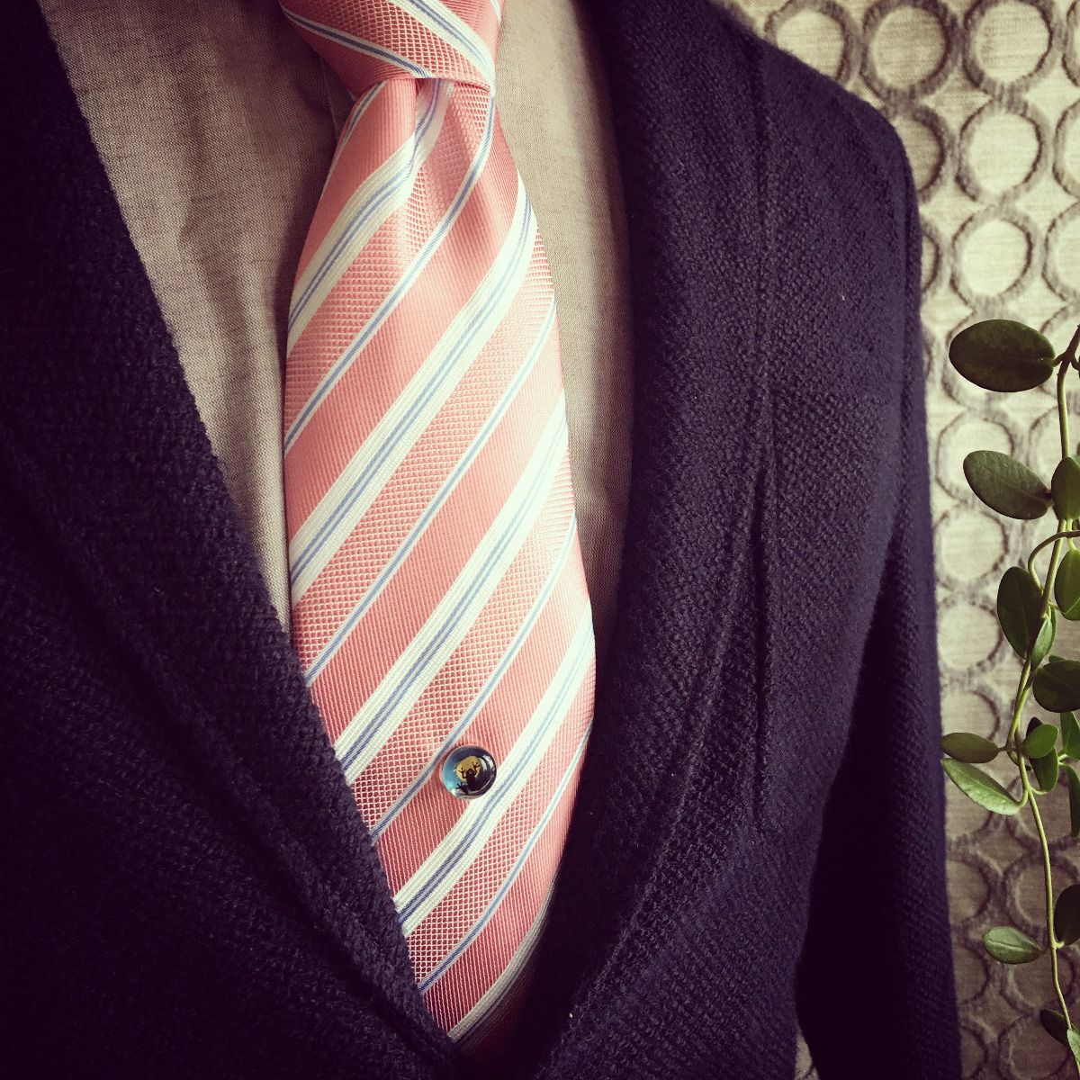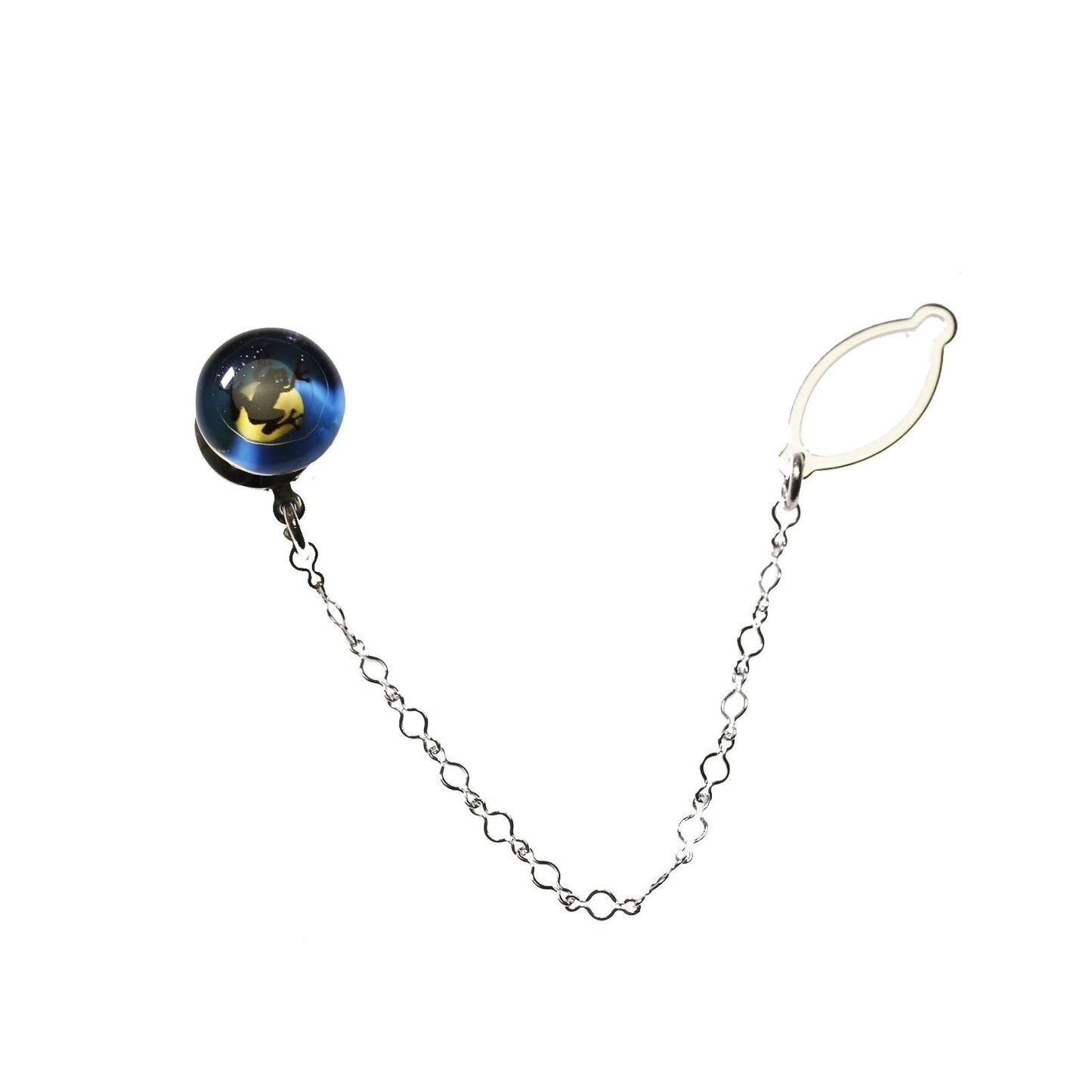It is a unique tie tack with a frog pattern into the resin. The roundness and its transparency are attractive. The blue and gold glitter is painted at the bottom. You can enjoy just looking at it and wear it as a subtle accent to your tie. It is a stylish men's accessory and is also ideal as a special gift.